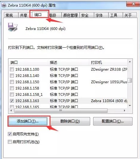 若是没有对应打印机IP地址的端口则先选择“添加端口”,如下: