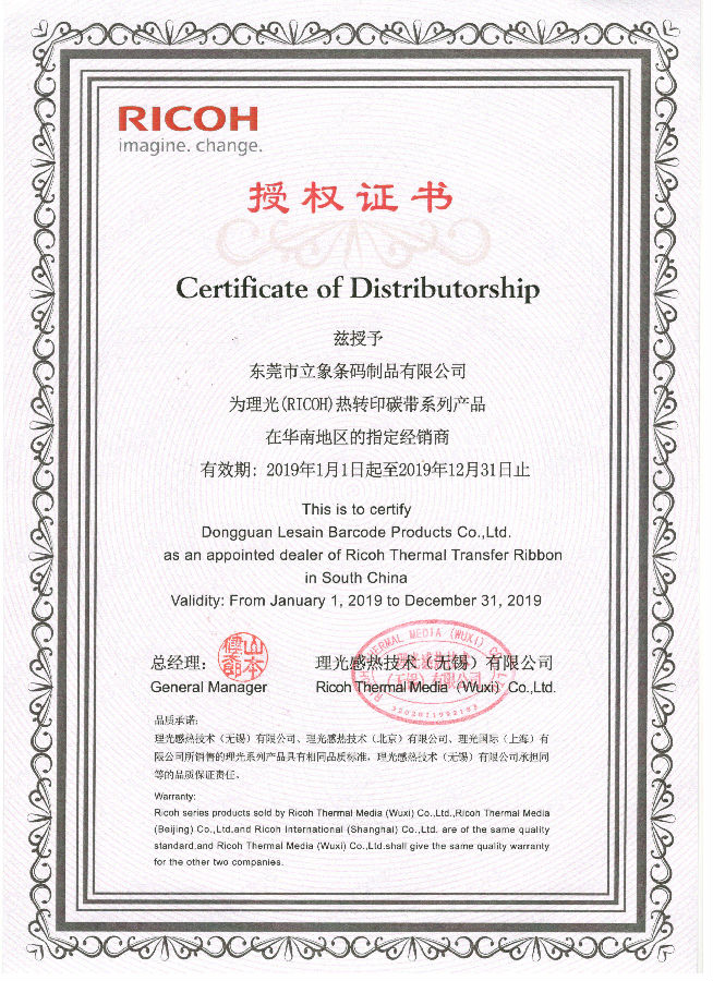 东莞市立象条码制品有限公司,主营条码打印机,条码扫描枪,数据采集器,条码软件,不干胶标签,条码碳带等,提供优质的售后服务,在东莞,广东,深圳,珠海,江苏,成都,长沙等地区为客户带来全方位的服务,如果您想了解更多关于理光碳带的信息,可以拨打我司全国统一热线:0769-22882629,官方网址:www.lesain.com和www.lesain.com.cn